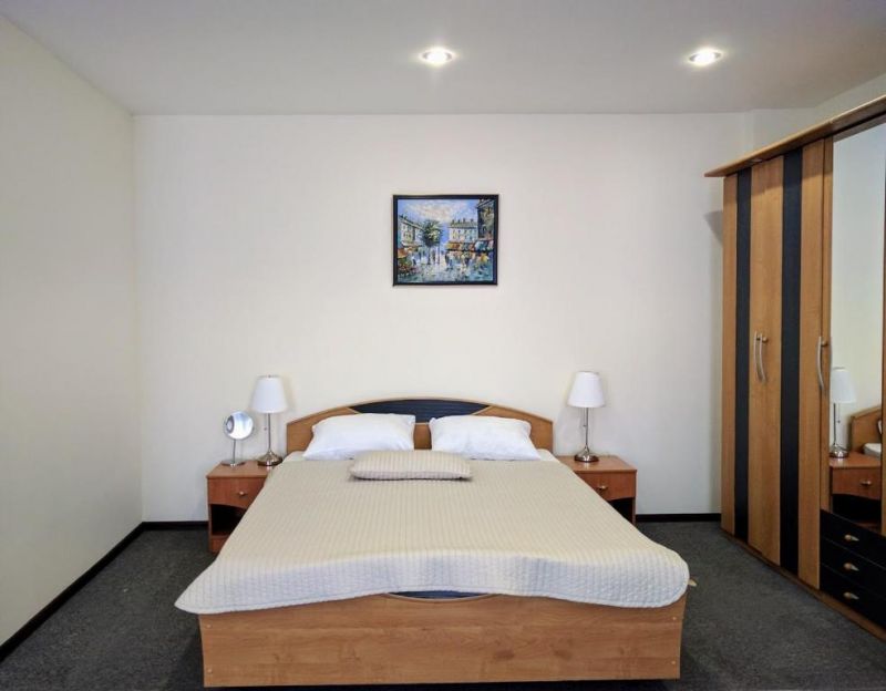 Стандарт 2-местный улучшенный:Площадь (кв. м): 22 м.Кол-во основных мест: 2.Кол-во доп. мест: 2.Мебель: прикроватные тумбочки, раскладной диван, шкаф, стол, стулья, журнальный столик, две односпальные кровати/одна двуспальная кровать.Оборудование: сплит-система, телевизор, холодильник, телефон.Санузел: с душем, фен, туалетные принадлежности.Сервис: услуги телефонной связи по территории отеля, услуги местной телефонной связи, уборка номера, смена постельного белья, смена полотенец.