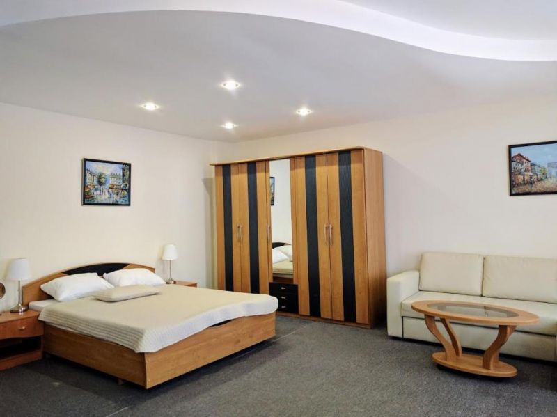 Студия 2-местный:Площадь (кв. м): 25 м.Кол-во основных мест: 2.Кол-во доп. мест: 2.Мебель: прикроватные тумбочки, раскладной диван, шкаф, стол, стулья, журнальный столик, две односпальные кровати/одна двуспальная кровать.Оборудование: сплит-система, телевизор, холодильник, телефон.Санузел: с душем, фен, туалетные принадлежности, халат, биде.Сервис: услуги телефонной связи по территории отеля, услуги местной телефонной связи, уборка номера, смена постельного белья, смена полотенец.