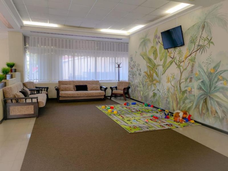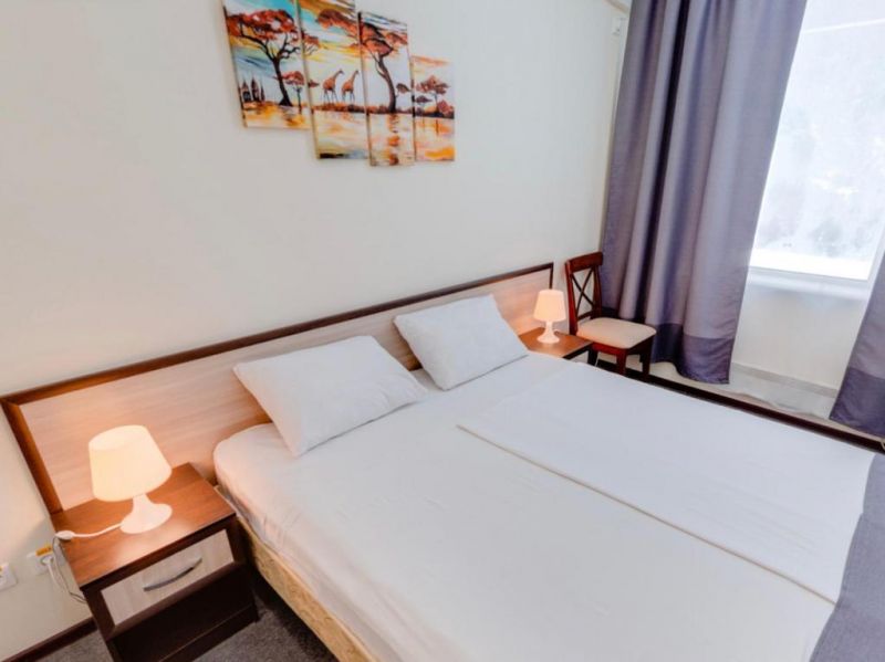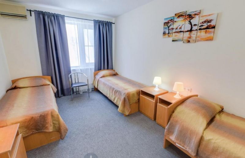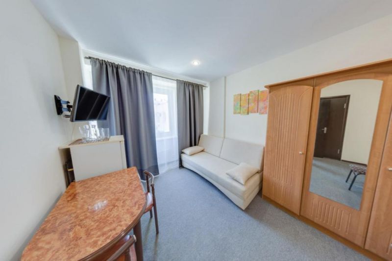 Семейный 3-местный 1-комнатный:Площадь (кв. м): 24 м.Кол-во основных мест: 3.Кол-во доп. мест: 1.Сервис: услуги телефонной связи по территории отеля, услуги местной телефонной связи, уборка номера, смена постельного белья, смена полотенец.Мебель: односпальная кровать, прикроватные тумбочки, кресло-кровать, шкаф, стол, стулья, журнальный столик.Оборудование: сплит-система, телевизор, холодильник, телефон.Санузел: с душем, фен, туалетные принадлежности.