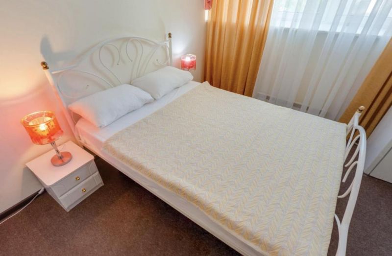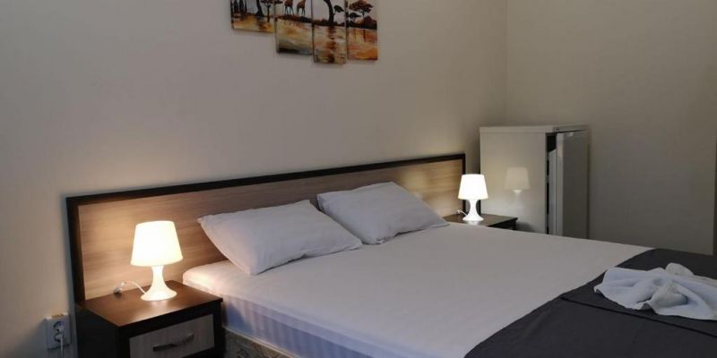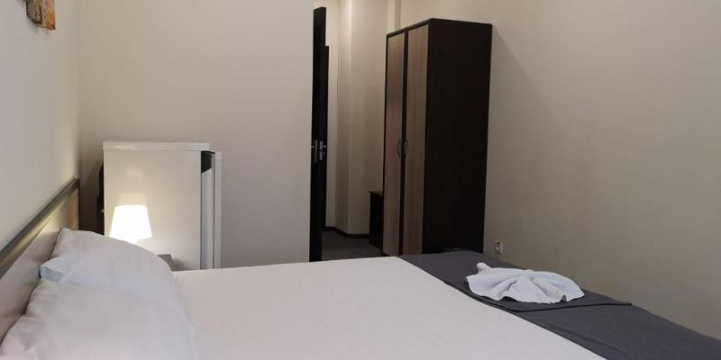 Эконом 2-местный DBL с вентилятором:Площадь (кв. м): 12,5 м.Кол-во основных мест: 2.Мебель: двуспальная кровать, прикроватные тумбочки, шкаф-купе, стол, стулья.Оборудование: вентилятор, телевизор, холодильник, телефон.Санузел: с ванной, туалетные принадлежности.Сервис: услуги телефонной связи по территории отеля, услуги местной телефонной связи, уборка номера, смена постельного белья, смена полотенец.