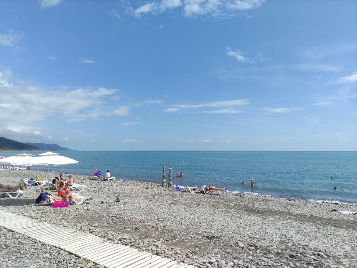 проход к пляжу осуществляется по территории санатория, через воздушный пешеходный мост