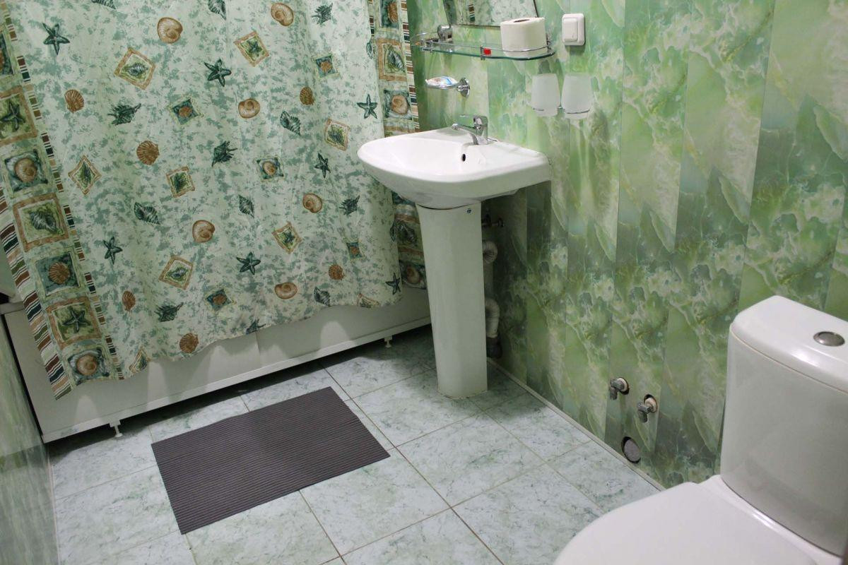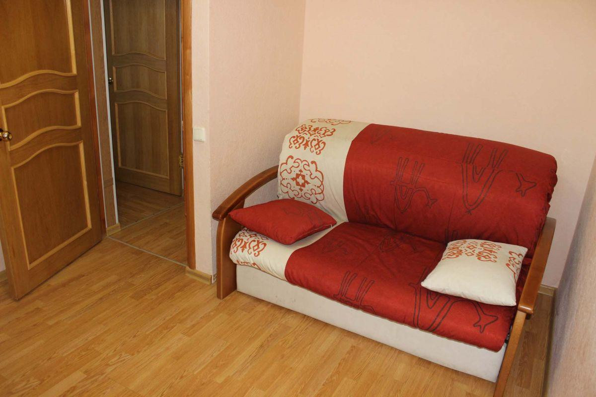 2-комн. 1-комн. Большой Солнечный — около 22 кв. м. Расположение — с 1 до 4 этажа. Окна (пластиковый пакет) обращены на восточную сторону (солнце с утра до 14:00). За окном — раздвижная сушилка для белья. 2 раздельные кровати, прикроватные тумбочки, шкаф, столик, зеркало. На полу — ковровое покрытие. Санузел полный (ванная с душем, раковина, унитаз, отделка — кафельная плитка). Предусмотрено размещение на доп. месте. (еврораскладушка)