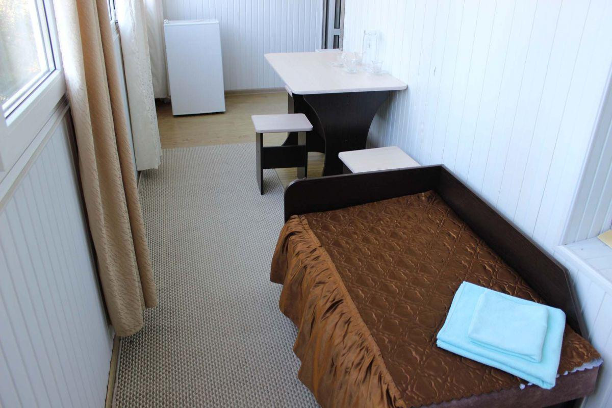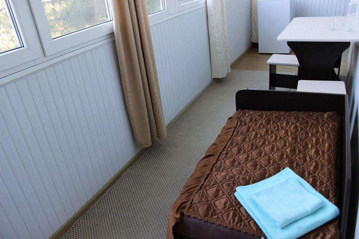2-местн. 1-комн. Большой Солнечный ПК — около 22 кв. м. Расположение — на 1 и 4 этаже. Окна обращены на восточную сторону (солнце с утра до 14:00). За окном — раздвижная сушилка для белья. 1 большая двуспальная кровать, прикроватные тумбочки, шкаф, столик, зеркало. На полу в центре номера, в зоне отдыха – ковровое покрытие. Прихожая (коридор и зона лоджии — кафельная плитка. Санузел полный (ванная с душем, раковина, унитаз, отделка – кафельная плитка). Предусмотрено размещение на доп. месте (раскладной диван). Ремонт – 2018-2019 г.г.