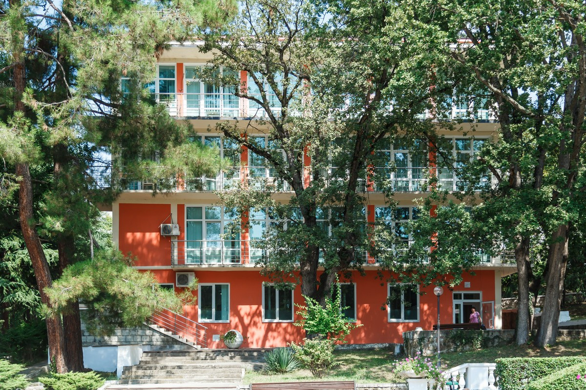 Плюсы: Для начала хотелось рассказать, что нас встречал на вокзале трансфер и довез до стойки размещения. где нам сразу предложили вариант номера выше классом чем мы заказывали. это было очень приятно. вторым бонусом было то, что опция шведский стол заработала раньше 1 июня. очень отзывчивый персонал, который решает все вопросы. сам номер был после ремонта, хорошим - в 4 корпусе. красивый вид из окна на море, в номере была новая ванная комната с новой сантехникой. питание шведский стол хорошее - много вариантов еды и для мясоедов и для вегетарианцев и диетическое питание тоже можно подобрать. много овощей и овощных салатов свежих и фруктов. территория санатория ухоженная красивая и много розовых цветущих кустов. а также прекрасный лесопарк из огромных деревьев - отсюда замечательный воздух. пляж нормальный - галька, но мы потом ходили подальше на центральные пляжи, для разнообразия. в стоимость номера входило лечение, что позволило пройти ряд приятных процедур для здоровья.