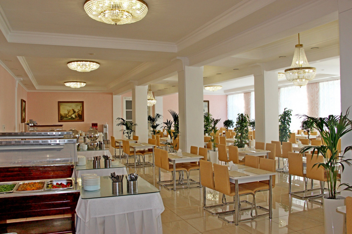 Минусы: напитки на шведском столе - очень скудный выбор - соков нет вообще, на обед только кисель либо компот, без альтернатив, хочется чтобы напитки были более разнообразными!. бассейн небольшой и когда много людей, то как в ванне, при этом посещение бассейна только 1 раз в день, это очень обидно особенно когда хорошая погода а море холодное, то хочется плавать не только один раз, и вообще хотелось бы посоветовать санаторию построить нормальный открытый бассейн, можно с морской водой. чтобы в нем можно было купаться не в шапочках, а просто! анимация и вообще развлечения просто очень скудные - если нет возможностей кого то звать часто, показывайте фильмы - пусть будет несколько сеансов - к тому же когда есть кинозал! было бы здорово чтобы были сеансы не в 7 часов а попозже, когда все возвращаются с прогулок. но это небольшие мелочи, которые можно исправить либо не обращать на них внимания)